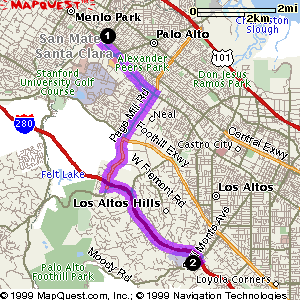 route from San Francisco to San Jose that runs through Palo Alto